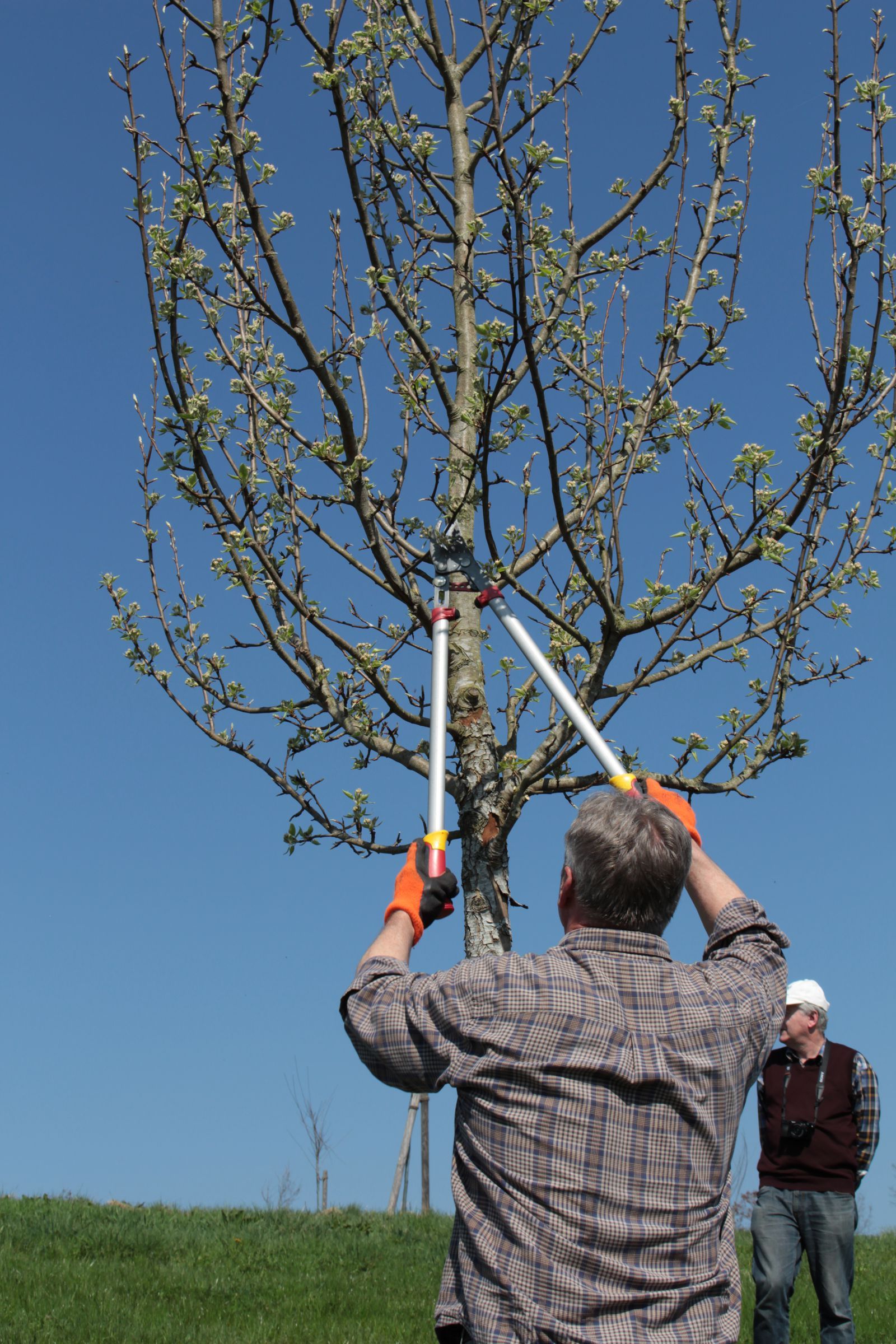 Ein Baum und seine Früchte können nur so gut sein wie seine durchlüftete, belichtete Baumkrone, sein gut gewählter und frei entfalteter Leitast und dem richtigen, dem Baum entsprechenden Schnitt. Bei dicken Ästen oder drohendem Astbruch sollen wir auch mit der Motorsäge rigoros auf Astring zurückschneiden. Schnittkanten sollen wir dabei offen halten, weil der Baum immer noch am besten wisse, wie er sich selbst heile.