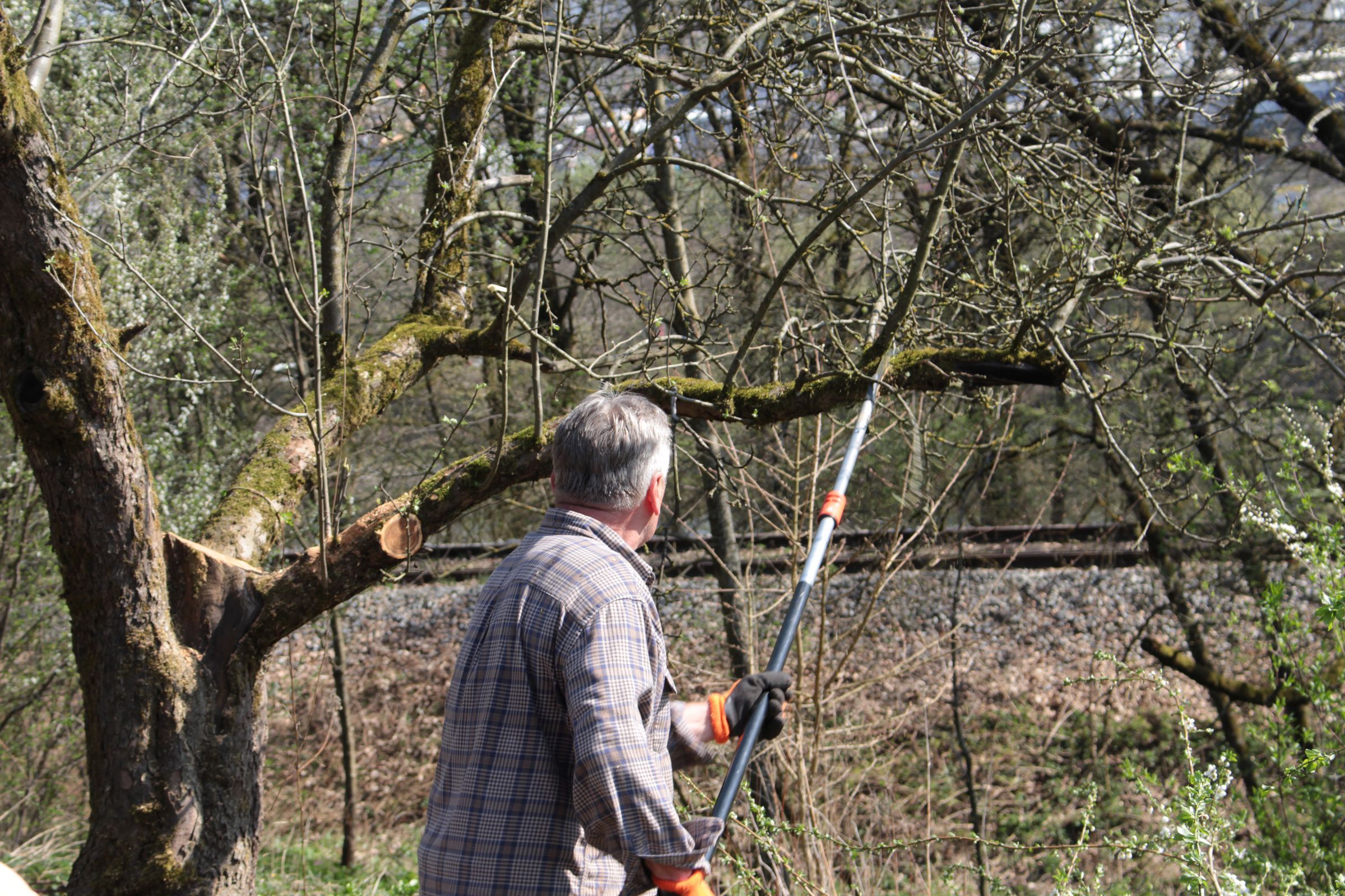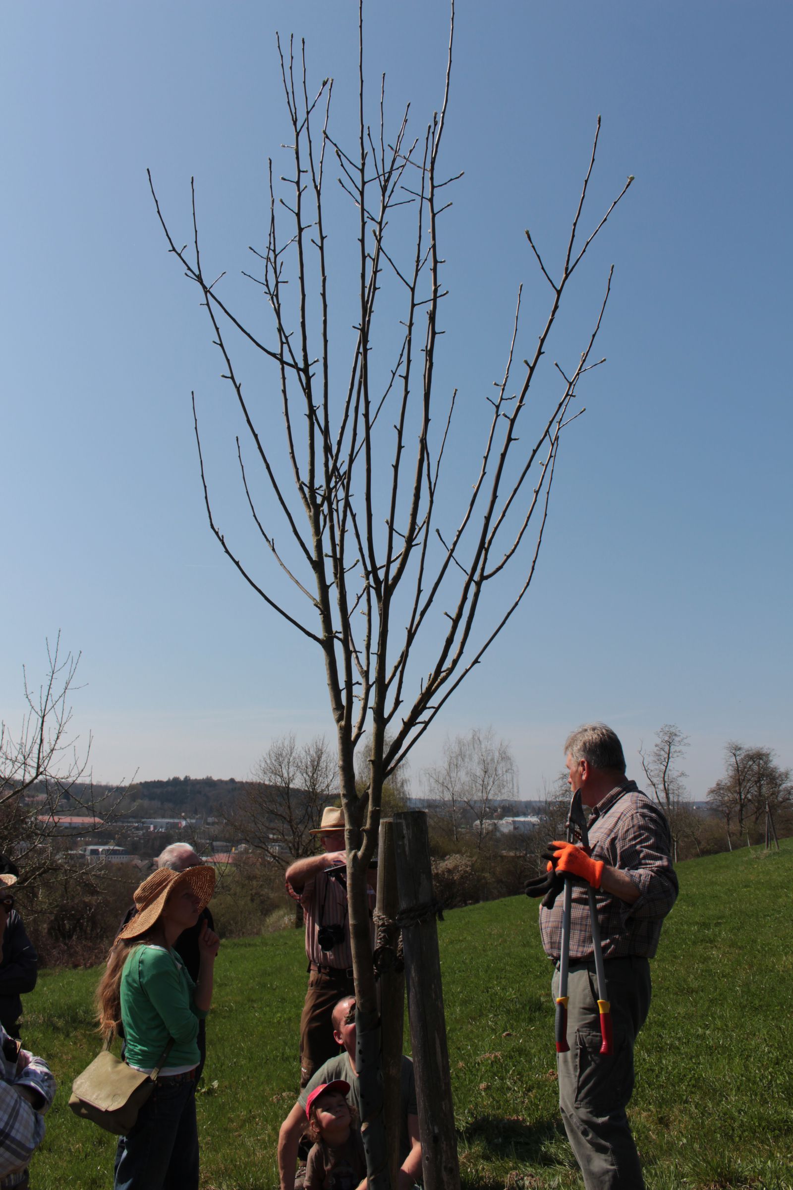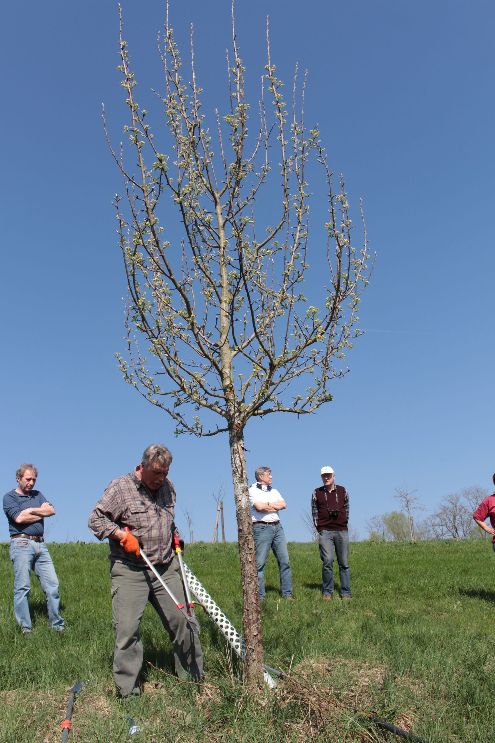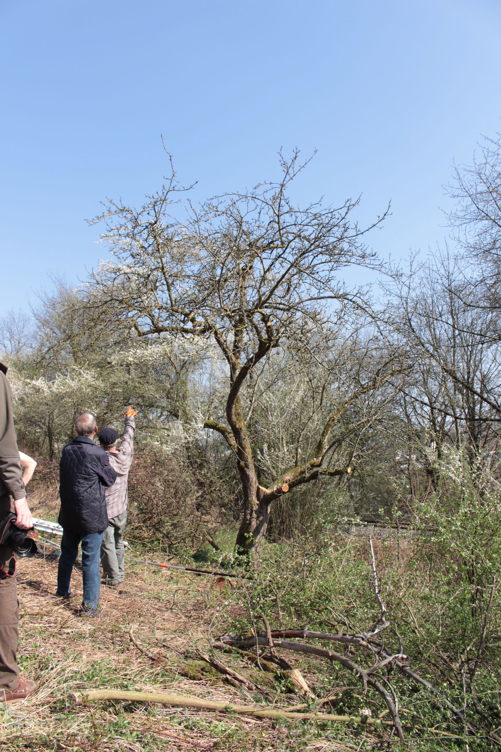 Bei einem austreibenden Baum Äste und Zweige fallen zu sehen, ist nicht einfach, wenn man als Laie versucht in den Obstbau einzusteigen. Doch mit jedem weiteren Schnitt war auch hier leicht nachvollziehbar wie der Baum von professioneller Hand geleitet wird, sich in Zukunft zu entwickeln. Wir kennen jetzt den Unterschied zwischen Schneiden und Pflegen, Pflanzschnitt, Erziehungsschnitt oder Verjüngungsschnitt mit Fruchtholzschnitt oder dem richtigen Standort.